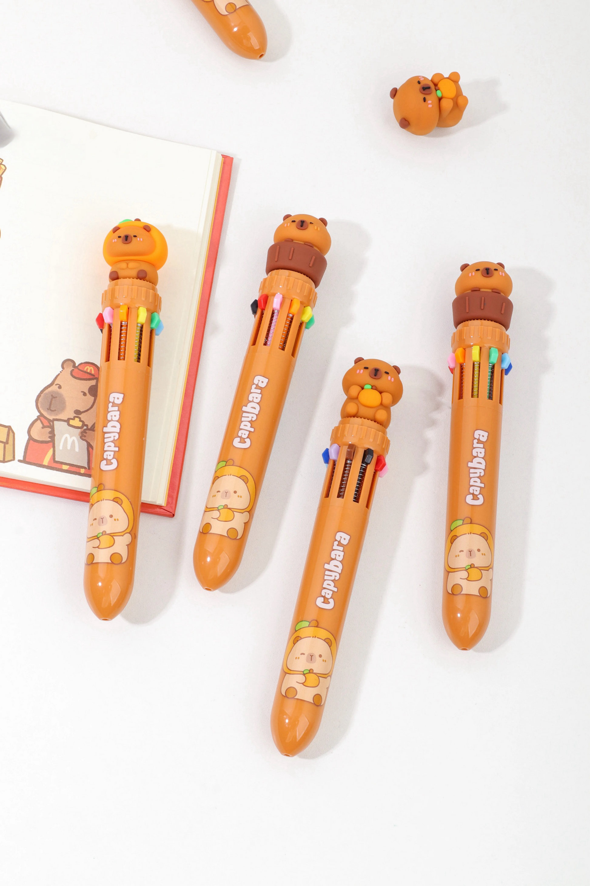 Meet your new favorite pen — the Capybara 10-Color Ballpoint Pen from the "Happy Life" series. Topped with a chubby 3D capybara figure dressed in an orange costume, this chunky multicolor pen packs 10 ink colors into one satisfying click-barrel body. It's the pen that does it all, and looks ridiculously cute doing it.