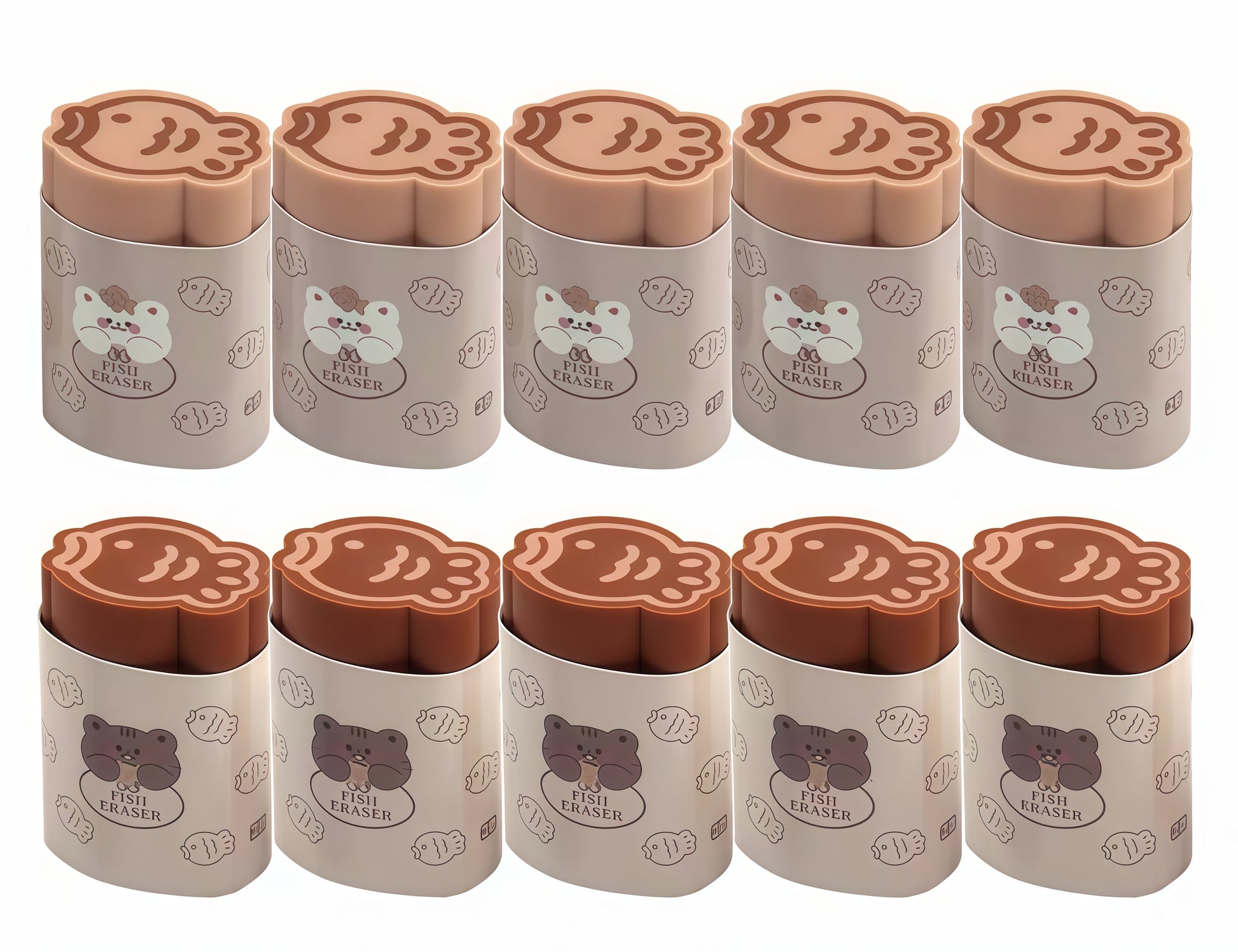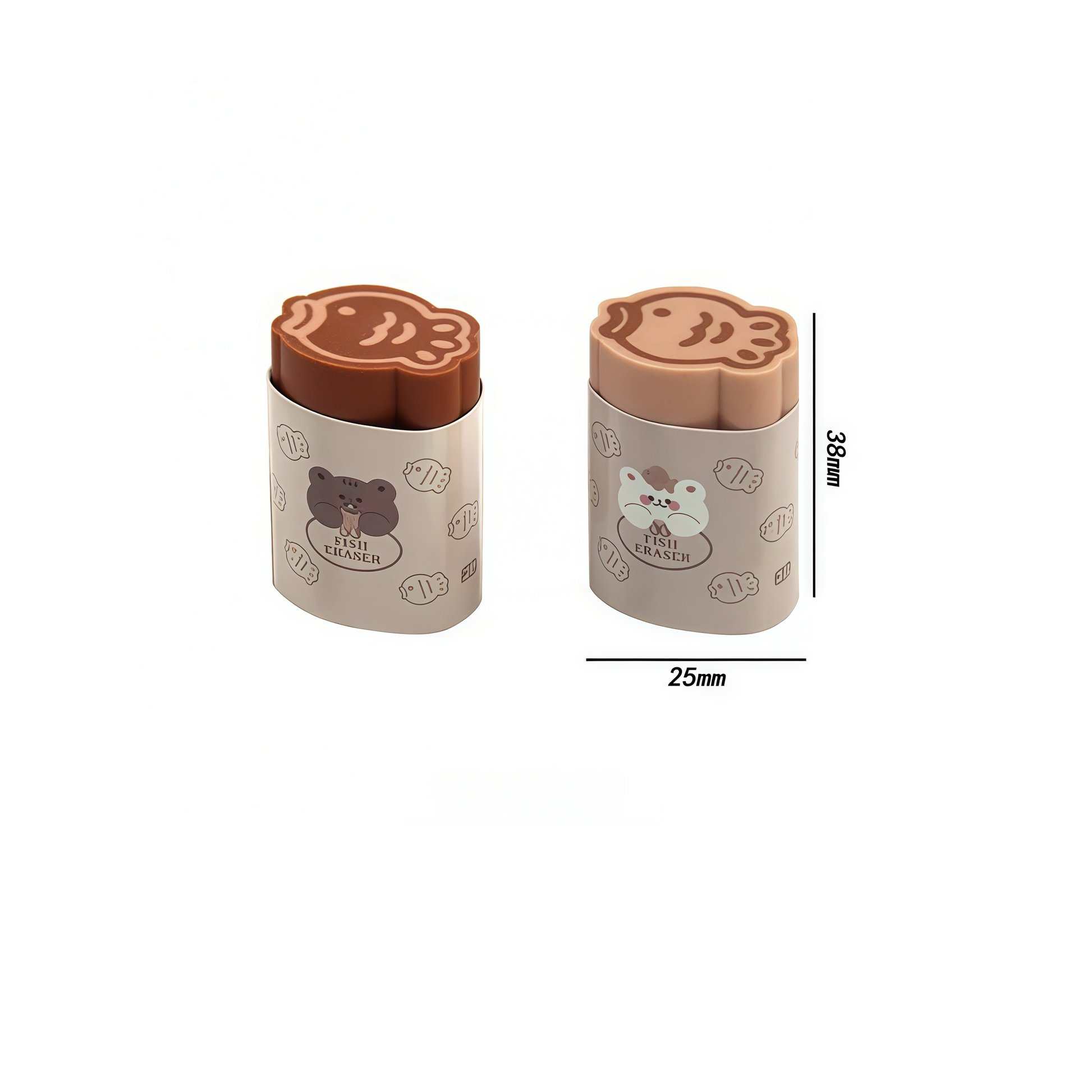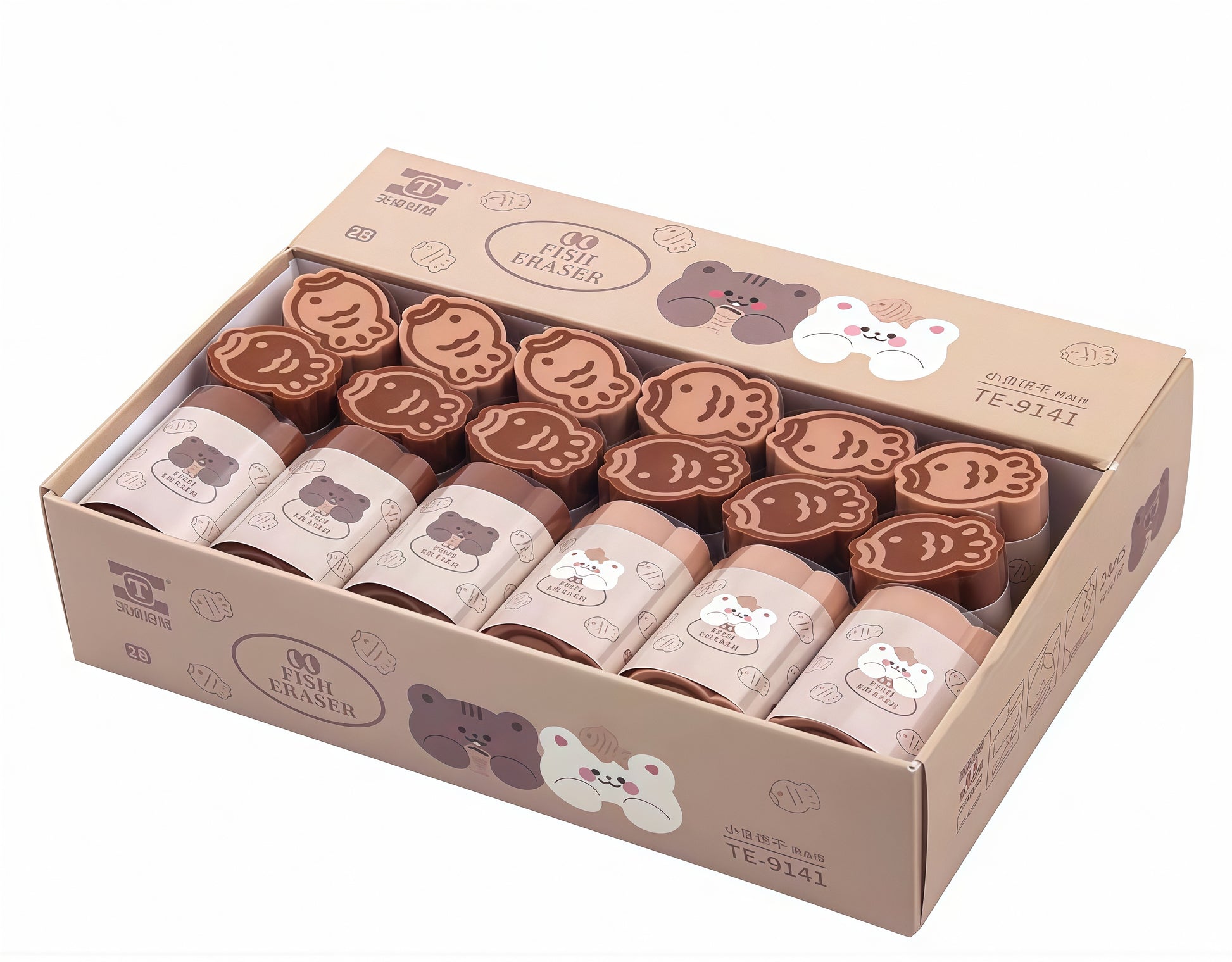 - Fish-shaped erasers with a kawaii bear character design
