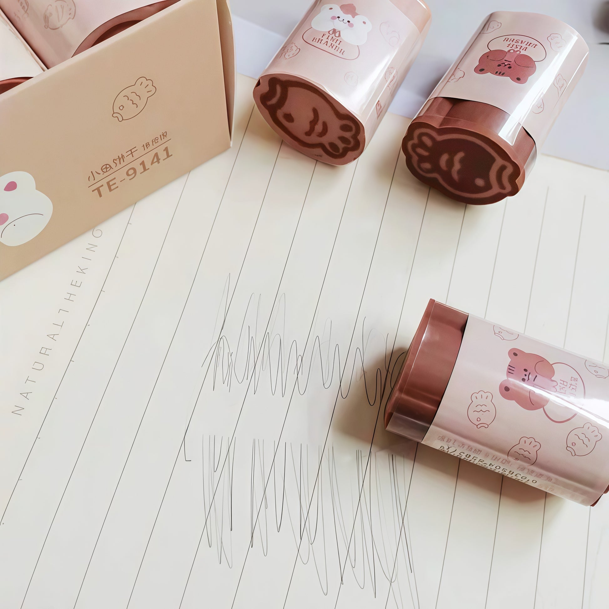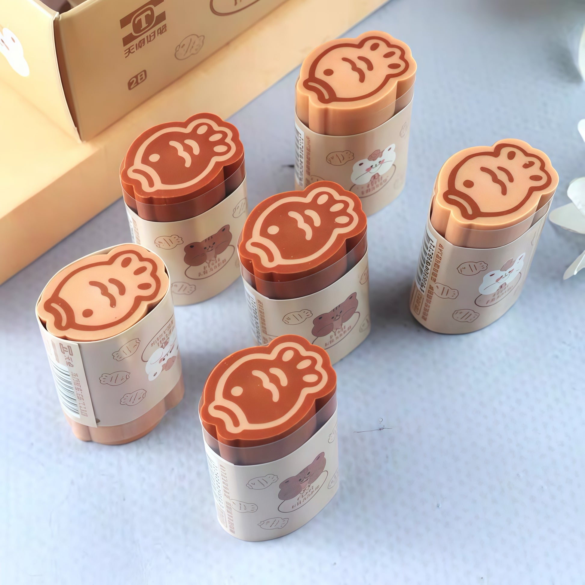 Bring a touch of kawaii charm to your desk with our adorable bear fish eraser collection! Featuring cute illustrated bear characters in warm, earthy tones, each eraser is individually wrapped in a delightful printed sleeve — combining everyday functionality with irresistible Japanese-inspired aesthetics.