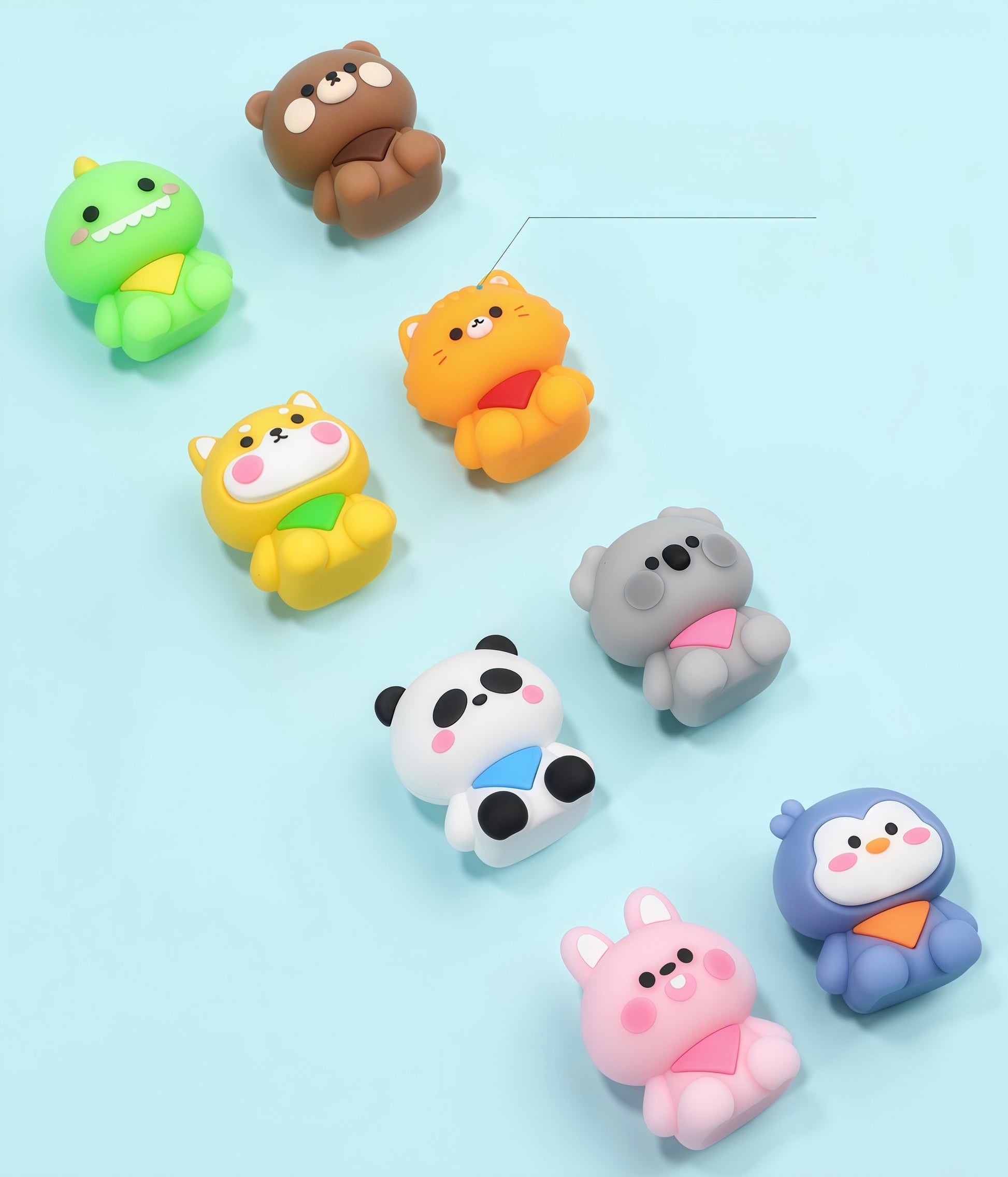 π¦π§π¨π¦π·πΌπ»π¦Β Mini Animal Friends β A rainbow crew of 8 chubby characters: a purple penguin, golden Shiba Inu, grey koala, green dino, pink bunny, classic panda, chocolate bear, and orange fox β all wearing the cutest little scarves. Pastel packaging, maximum personality.